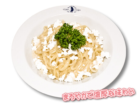 ロマーノ、パルメザン、リコッタ、アジアーゴ、カッテージの5種のチーズでヒロイン達をイメージしたパスタ。クリーミーな味がたまりません。