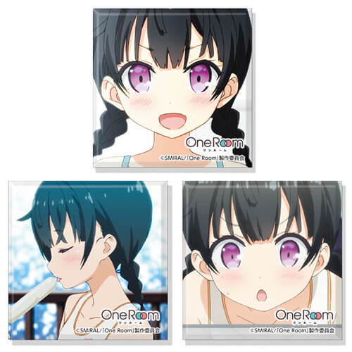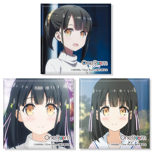 ・OneRoom スクウェア缶バッチ 「花坂結衣セット」「桃原奈月セット」「青島萌香セット」 各¥1,500+税