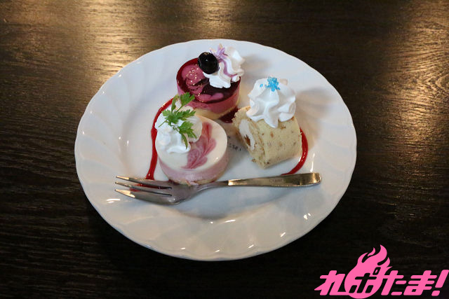 ファーストシーズンのヒロイン3人をイメージしたプレート。3人のヒロインの個性が味わえる贅沢なスイーツ。