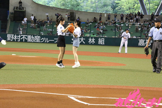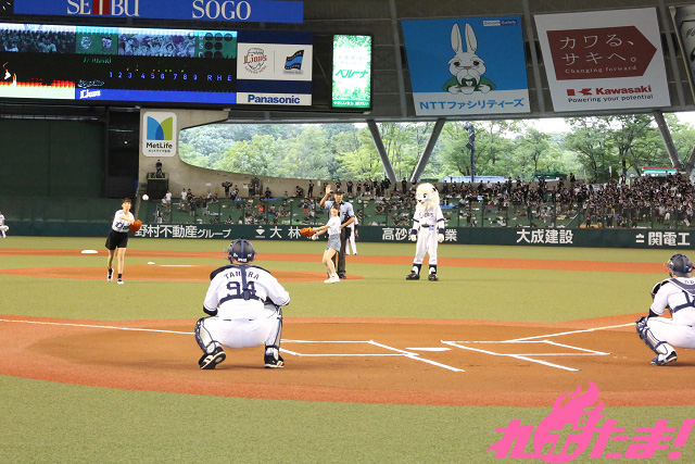 メットライフドームで2度目の始球式を行なう小倉さんと、今回初めて始球式に臨む、中学・高校時代にソフトボールの経験があるという日笠さん。迎えた本番では小倉さんが見事なストライク投球を披露。うれしさのあまり、日笠さんと抱き合い、かたや日笠さんは早くも次の始球式を希望。リベンジに萌えていた。
