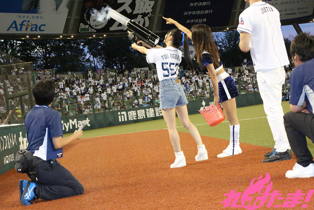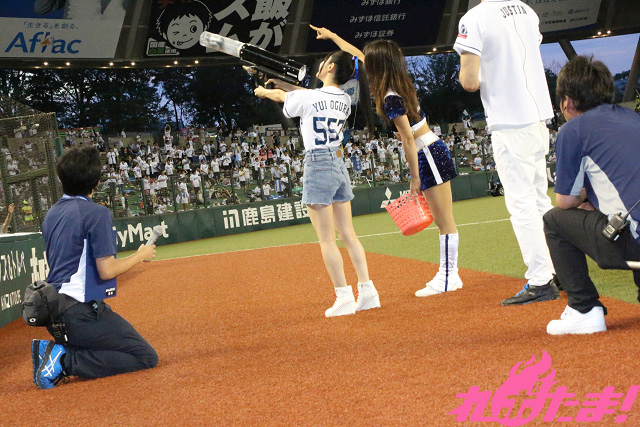 さらに「バズーカタイム」では、小倉さんがバズーカを使ってファンサービスを行ない、試合後にはオーロラビジョンを使った『ヤマノススメ』の上映会も。野球ファンも作品ファンも楽しめた1日だった。