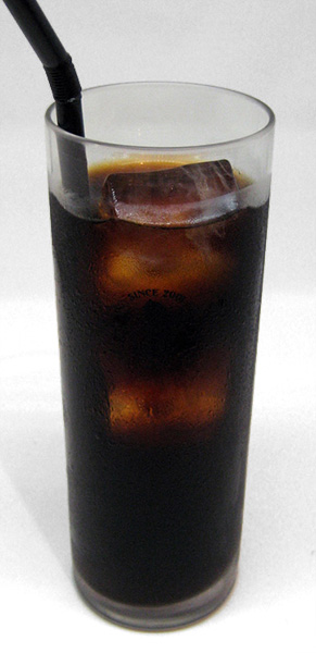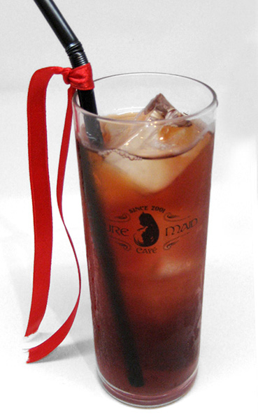 ブルーベリージュース×アイスティー+黒ストロー+赤リボン
