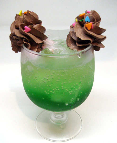 メロンシロップ×ソーダ+チョコホイップ+ハートシュガー