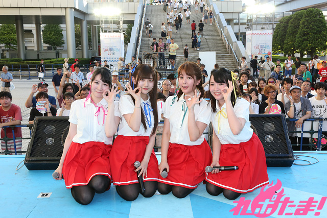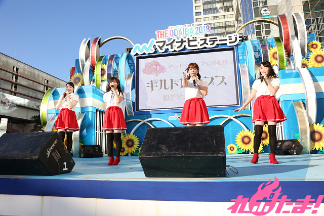 BSフジで毎月第3金曜 24:00~24:30に好評放送中「<ジャパコンProject>『ギルドフレンズ~飯田里穂の!世界へ?本気です!~』」から生まれた声優アイドルユニット「ギルドロップス」(江原裕理、小坂井祐莉絵、山田麻莉奈、永恵由彩)がいよいよデビュー! 2018年7月31日(火)、フジテレビで開催中の「ようこそ!!ワンガン夏祭りTHE ODAIBA2018」特設ステージで番組の公開収録が行なわれた。