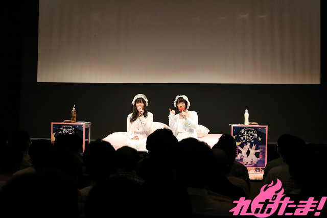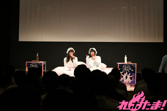 続いて「世界中が恋をする夜」のMVについて。竹達さんが「わたあめが美味しかった!」と話すと、悠木さんは「わたあめを食べるシーンで、実は本物のわたあめは一部分だけなんです」と暴露。MVを観ながらそのシーンを検証していたふたりだが、「そう言えば私たち、座り位置がいつもと逆じゃない?」と気づくふたり。「もう、そのまま行きましょう!」と持ち前のフリーダムぶりを発揮していた。