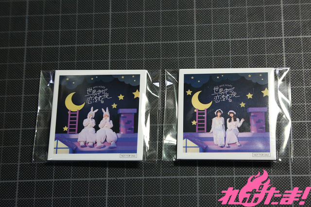 ▲昼のフリーイベントで配布予定だった「世界中が恋をする夜」ピンバッジ