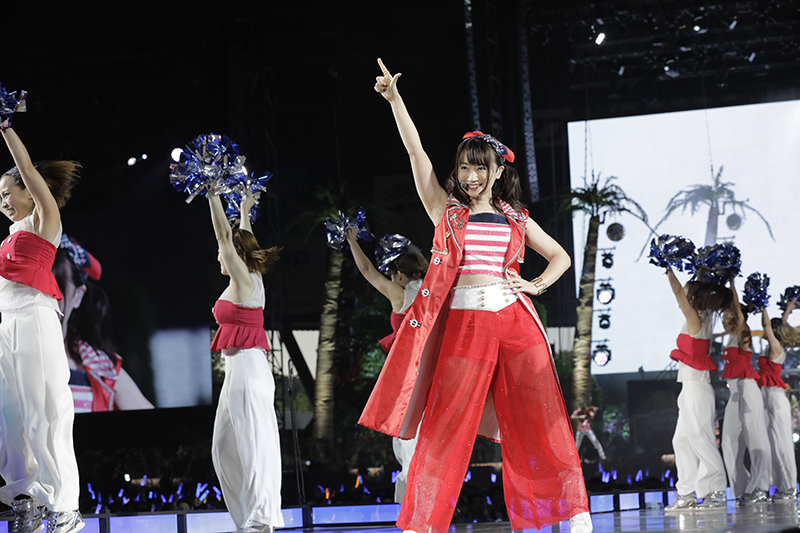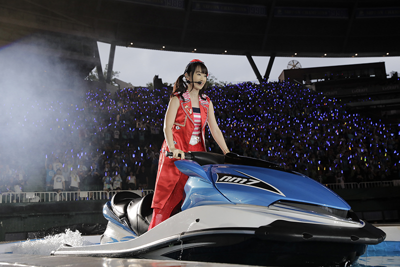 「遂に水路作っちゃいましたー!」と興奮気味に話し、「7」回目のメットライフドーム公演であることを報告。観客と喜びをわかちあった。そして、続く「Happy Dive」「You have a dream」でもたくさんの笑顔を振りまいていく。
