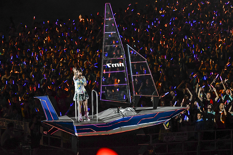 客席からの「奈々」コールに応え、ステージ下手からヨット型フロートで登場し、披露されたのは「残光のガイア」「君よ叫べ」。アリーナを外周しながら拳を振り上げ、「残光のガイア」のサビ前では「YES!」のコールが会場に響き渡る。
