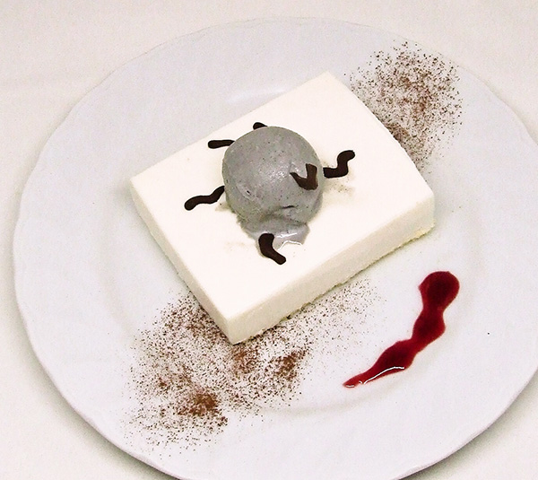 オカ研特製の壁に埋まった鼠クッキーをチーズケーキと胡麻アイスバージョンに。大丈夫、美味しいです。