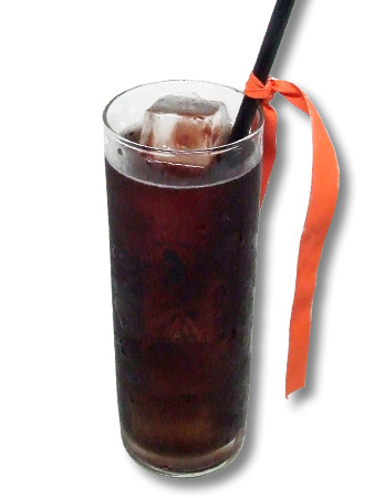 コーラ×ブルーベリージュース+黒ストロー+オレンジリボン