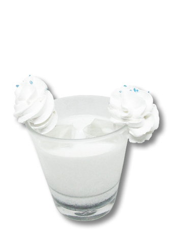 ラムネシロップ×カルピス+ホイップ+水色アラザン+フラワーシュガー