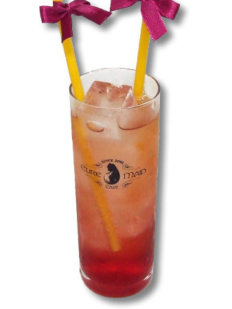 ストロベリーシロップ×ジンジャエール+黄色ストロー2本+ピンクリボン