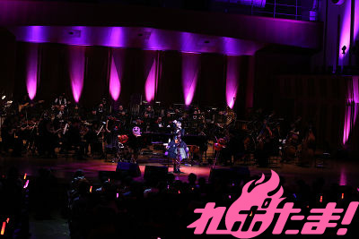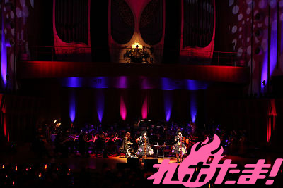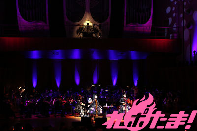 ハロウィンを思わせるような舞台で、今回披露された楽曲のアレンジを担当したピアノの【オオサキ】さんを筆頭に弦楽器、金管楽器の奏者が続々とステージに登場。チューニングが行われた後は、ふたりが「ラスボス」と称した、会場の上に備え付けられたパイプオルガンによるソロ演奏で荘厳な雰囲気を演出した。