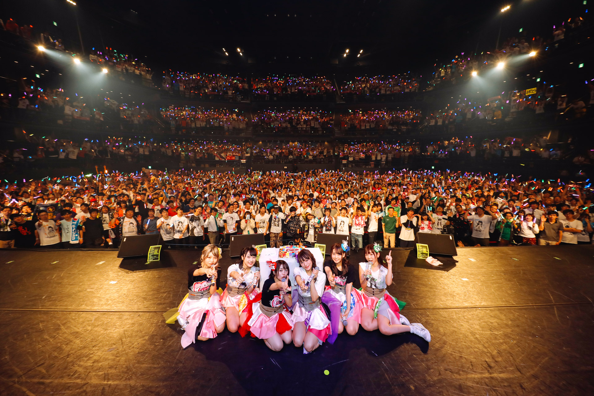 6周年のお礼を含めメンバーが自己紹介をしていくと、会場全体がイメージカラーに染まり、熱い声援が飛びます。そして、息つく間もなく「ミラクル☆パラダイス」に突入し、ステージを縦横無尽に使ったパフォーマンスに会場が揺れるが、ここで再び、会場を不穏な声が包みます。