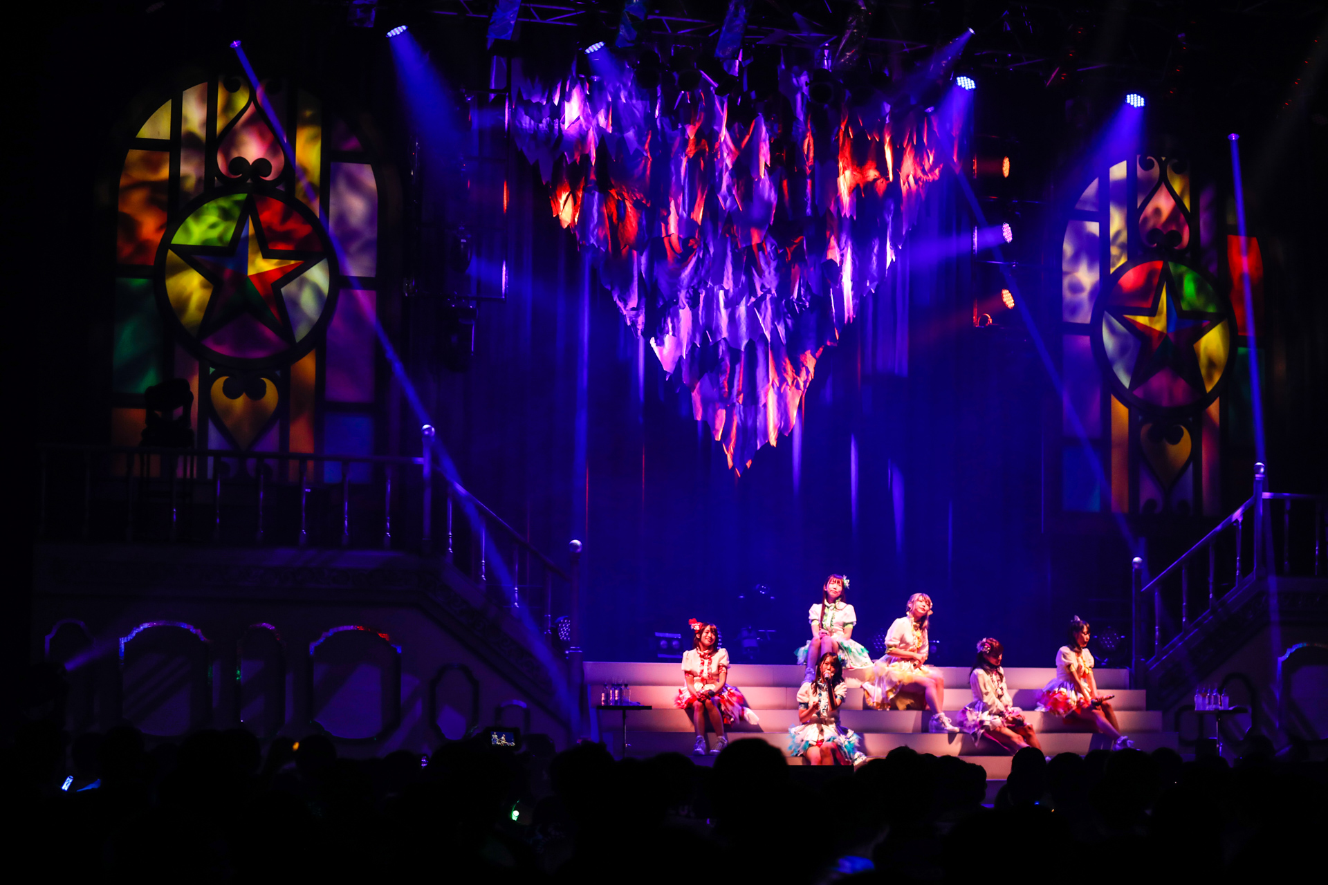 明るく楽しいライブを取り戻すために歌われた「幻想曲WONDERLAND」では、「あれ~?ここどこだろう~?」の問いかけに客席中から「TDCホール!」のレスポンスが。続く「Vampire Lady」でもヴァンパイアを模した振付を存分に活かした圧巻のパフォーマンスでファンと一体になるが、「ネガティブ・オーラ」からの攻勢で、ギスギスし始めてしまうi☆Risのメンバーたち。ステージに残った山北・澁谷はステージ中央でファンの求める大人のカッコよさをアピールしようと「Believe in」を披露。続いて登場した芹澤・久保田はファンだけでなく、「ネガティブ・オーラ」もメロメロにしようと可愛さをアピールをしつつ「Love Magic」を歌う。そして茜屋・若井の二人が「流星」をその歌唱力でしっとりと歌い上げました。