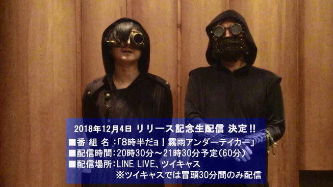 12月5日(水)に発売される1st シングルの店着日、通称“フラゲ日”にあわせて、12月4日(火)の20時30分より初のLINE LIVE、その名も「8時半だョ!霧雨アンダーテイカー」を実施することが決定しました!