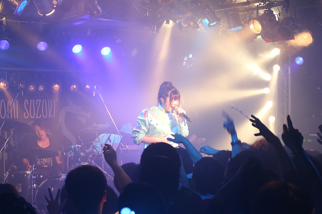 自身の声優初主演作である「LOST SONG」OP主題歌「歌えばそこに君がいるから」をエモーショナルに聴かせると次の「DAYS of DASH」では可愛らしい笑顔でお客さんと一緒に歌うという微笑ましい場面も。続いて、母のこと思いながら書いたという鈴木が作詞を手掛けた「Weak and Brave」は壮大なバラードナンバーで、これまでの明るい空気が一気にシリアスな空気にかわる。彼女の大切な人への想いが観客の胸に沁みわたり歌声に引き込まれていった。続いての「THERE IS A REASON」で赤色から白色へサイリウムの色が変わり、ピアノの美しいイントロで静かだが力強く歌う姿は少女から女性へと成長したように見えた。