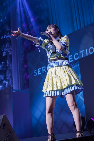 さらにテレビアニメ「プリパラ」の大人気キャラクター南みれぃとしてのキャラクターソング「ぷりっとぱ~ふぇくと」を、キャラクターのイメージに合わせた黄色の衣装とともに歌う。そして「ここにいるみんなに、思いを込めて歌いたい」と宣言して歌唱した自身の1stシングル「最悪な日でもあなたが好き。」では、「あなたが好き」の歌詞に合わせて客席に手を振りつつ、歌いきると思わず涙を流す一幕も。そして「盛り上げてくれて、ありがとうございました!」の言葉とともにこの日一番の最高の笑顔を見せた。