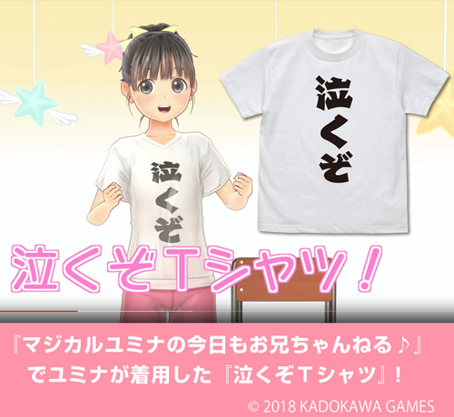 さらに、この展覧会に合わせ、早くもグッズが登場! 公式WEBラジオにて”ユミナ”が着用した「泣くぞ Tシャツ」や