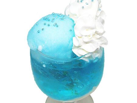 ブルーキュラソーシロップ×カルピス+ラムネシャーベット+ホイップ+ブルーパール+バーベナ+青ストロー+リボン