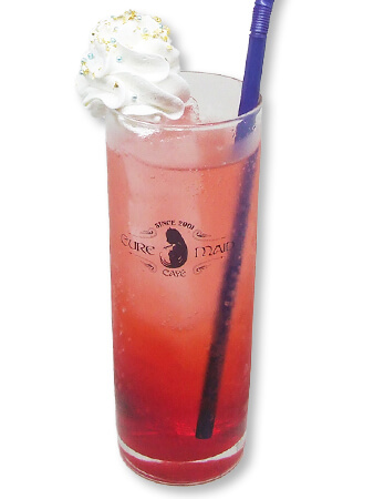 グレナデンシロップ×サイダー+ホイップ+ブルーパール+金粉+青ストロー