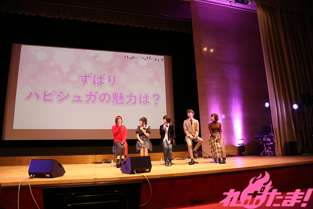 最初のコーナーは「ハッピーシュガーメモリー」。「キャラへ一言!」「私にとっての“しおちゃん”」「いまの記憶を持って、アフレコ初日に戻れるとしたら?」「ハピシュガの魅力は?」といったお題で出演陣がトークを繰り広げ、アフレコでの裏話やキャラクターに対する持論などが語られた。花江さんは「太陽はネタにされがちですが、彼の壮絶な人生を考えると、しおは彼にとって本当にかけがえのない存在なんです」と熱弁した。