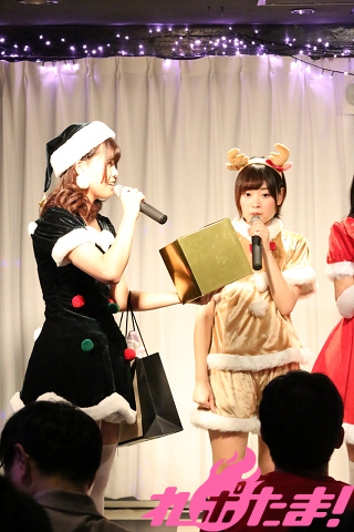 ファンに向けての私物抽選会では、「ポケモントートバッグ」や「チョコレート玩具」、そして「男装時に使ったiPhoneのケース」など、いわくつきのアイテムも。そんな中で北村さんが持参したのは、自分で描いたイラストをフォトフレームに入れたもの。手の込んだプレゼントに当選したファンも大感激だった。さらにメンバー同士のプレゼント交換もあり、クリスマス気分を満喫していた。