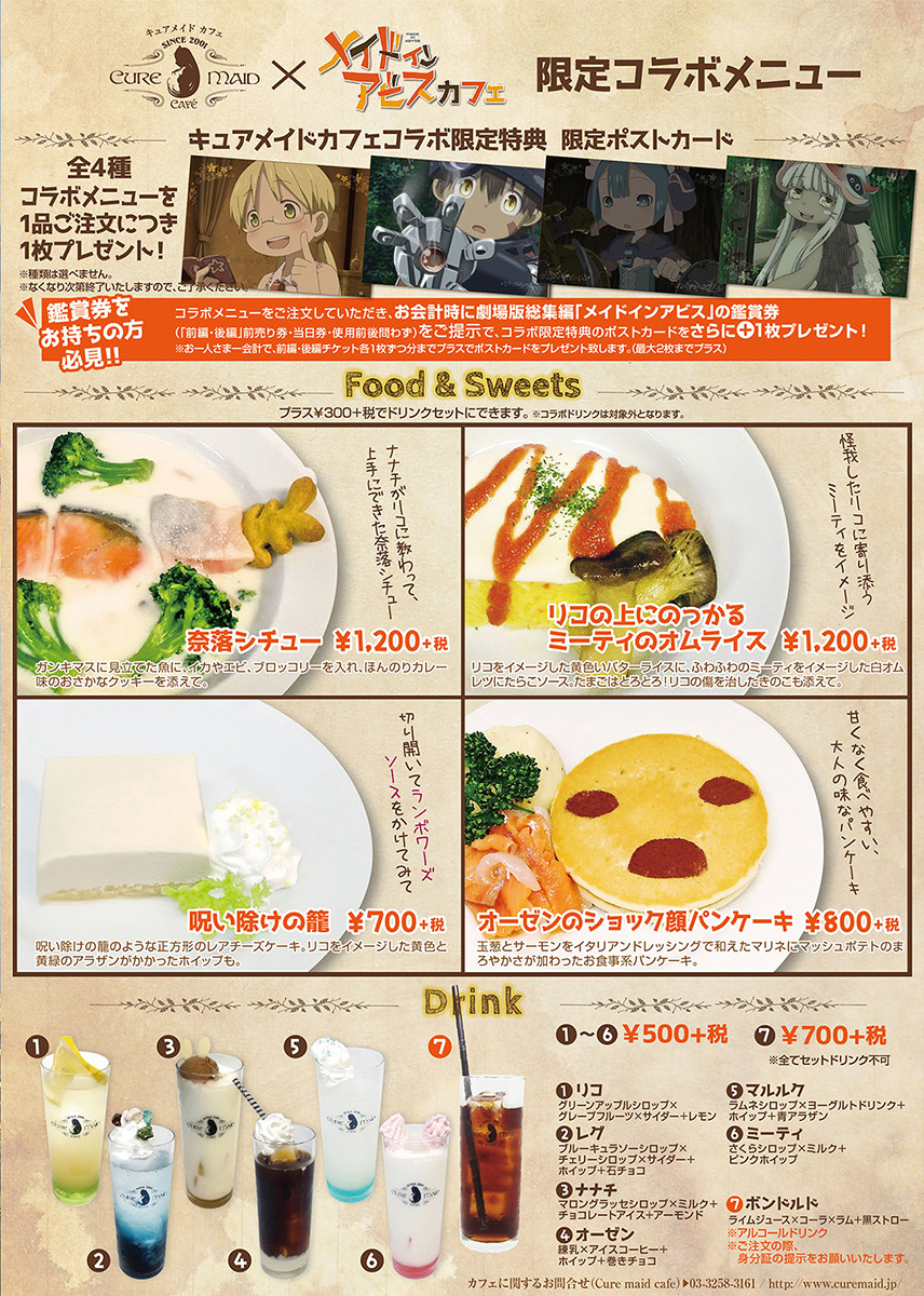 劇場版を見る前も見た後も、おこがれの『メイドインアビス』コラボカフェはキュアメイドカフェで待っています。ぜひ辿り着いてくださいね!