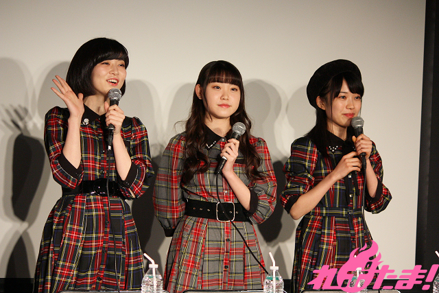 続いての岩淵さんのプロフィール紹介では中学高校と吹奏楽部で担当していた特技のコントラバスについて熱く解説。さらに鈴木さんもクラリネットとピアノの演奏が特技とコメント。特にピアノは作曲や編曲が出来るほどの腕前だといういうことが語られ、これには「すごいな」とやまけんさんも感心しきり。そんな鈴木さん以外のメンバー全員もピアノを弾けるということで、やまけんさんからは「グランドピアノ6台のライブとかどうよ(笑)」といった提案も。しかしさすがにグランドピアノだと用意するだけで赤字確定ということもあってか「連弾はしたいですけど……」と言いつつ3人からの反応はイマイチ(笑)。
