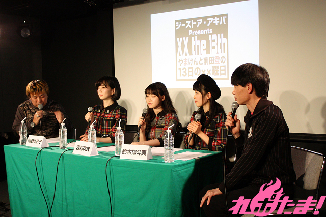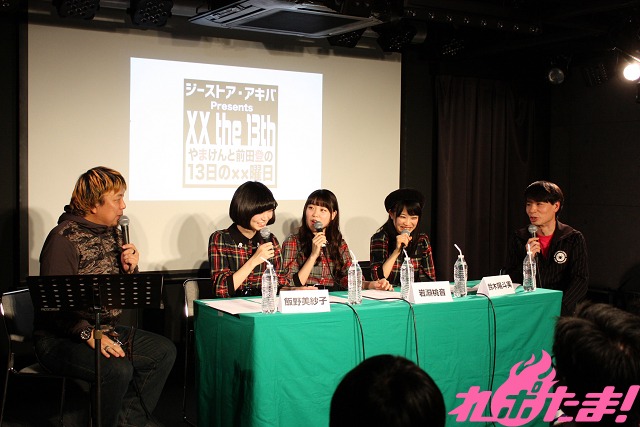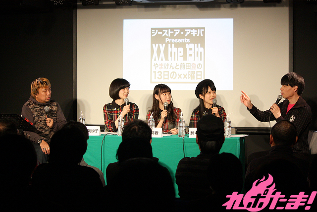 毎月13日(たまに別日)に東京・秋葉原のジーストア・アキバ5Fの「13式催事空間」で好評開催中のこのイベントだが、2019年の一発目となる1月13日には6人組の女性声優ユニット「NOW ON AIR」から飯野美紗子さん、岩淵桃音さん、鈴木陽斗実さんの3人がゲストとして登場。フレッシュかつ個性的な彼女たちのトークと笑顔にやまけんさんも前田さんも翻弄されっぱなしといった2時間となった。