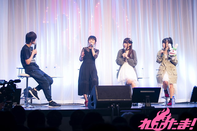 まずは『冴えない彼女(ヒロイン)の育てかた』コーナー。トークパートには加藤 恵役・安野希世乃さん、澤村・スペンサー・英梨々役・大西沙織さん、霞ヶ丘 詩羽役・茅野愛衣さんが登壇。作品関連のイベントでは開演前の影ナレーションなど、原作者の丸戸史明先生が書き下ろしたシナリオが多く使われているらしく、この日も楽屋に先生が来訪されたとのこと。そんな丸戸先生から生まれたキャラクターたちへの愛情を込めて、演じた人物を紹介した。また、秋に劇場公開がが予定されている『冴えない彼女(ヒロイン)の育てかた Fine』の絵コンテも見せてもらったそうで、3人はネタバレしないようにうまく見どころを語った。