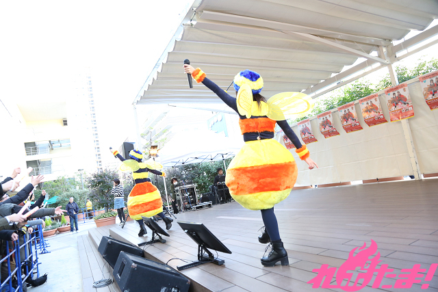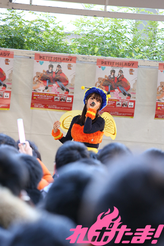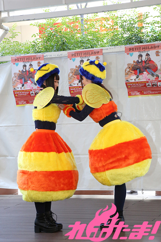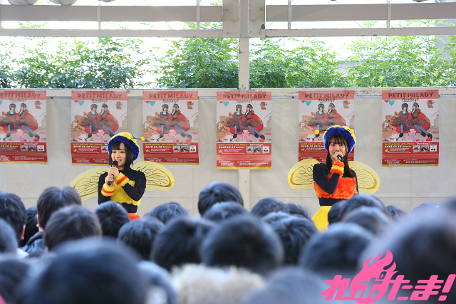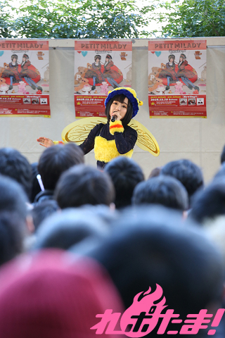 当日は好天に恵まれ、早い時間からムッチュ☆(プチミレファンの総称)が集結。お昼13時になると、12月に東京ドームシティ・ラクーアガーデンステージで開催されたフリーイベントに続き、「Howling」のMusic Videoで着用したハチの衣装姿で登場、会場からは大きな歓声が上がった。関西では、これまでにイベントを開催したことはあるものの、歌声を披露するのは初めてということで、ふたりも寒空の下、気合い十分。さらに、初めてpetit miladyに会うというムッチュ☆も多く、ふたりも「効果的なプロモーションになりましたね(笑)」と大満足。