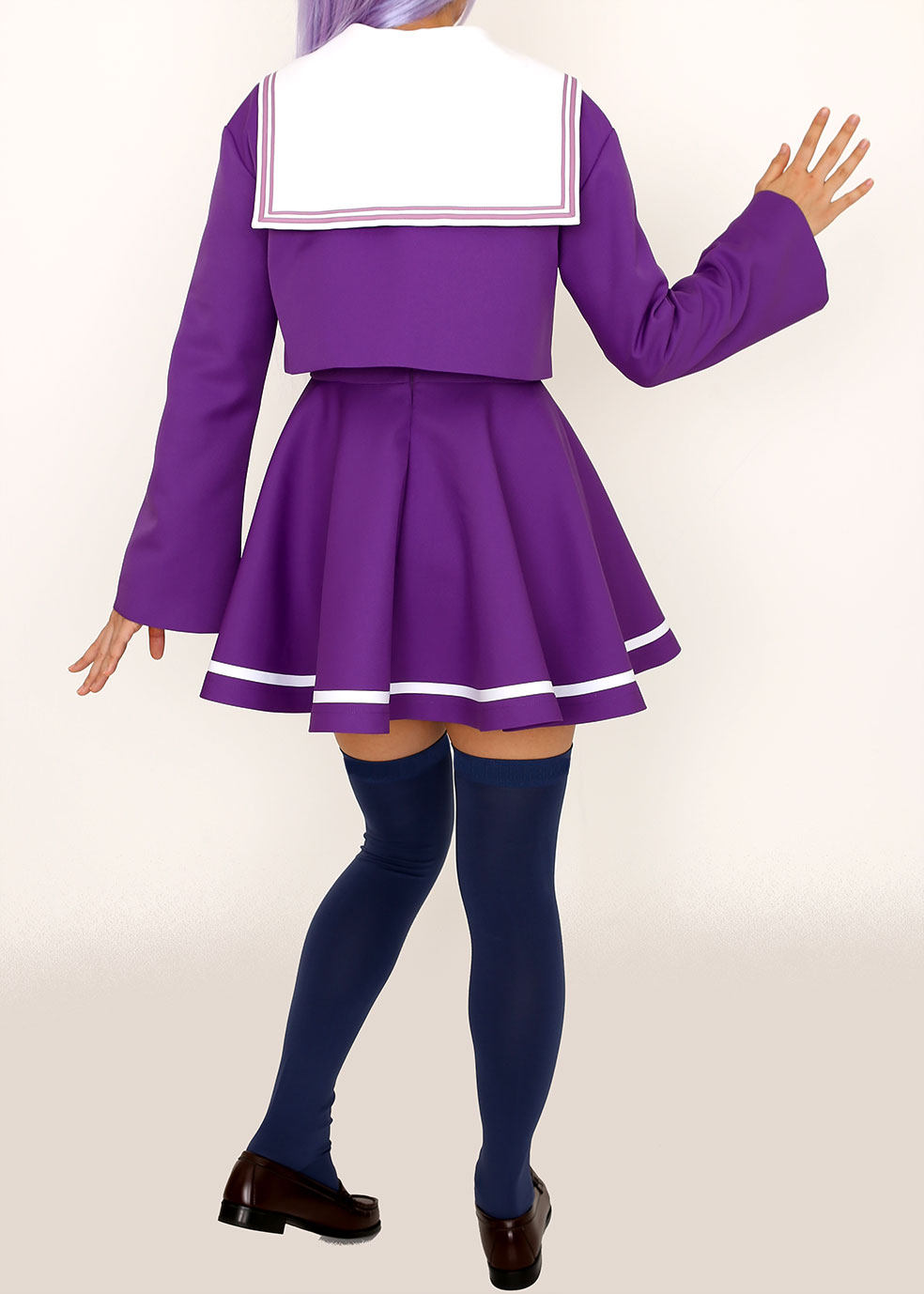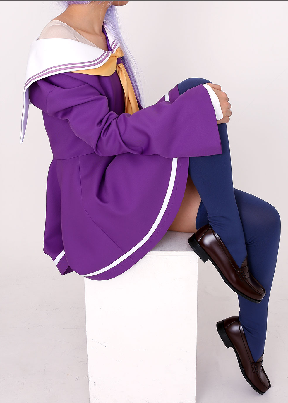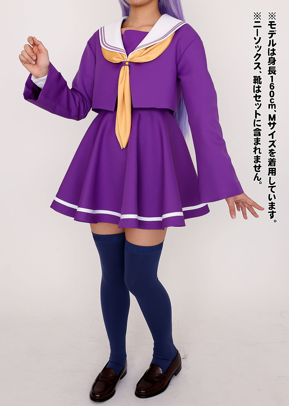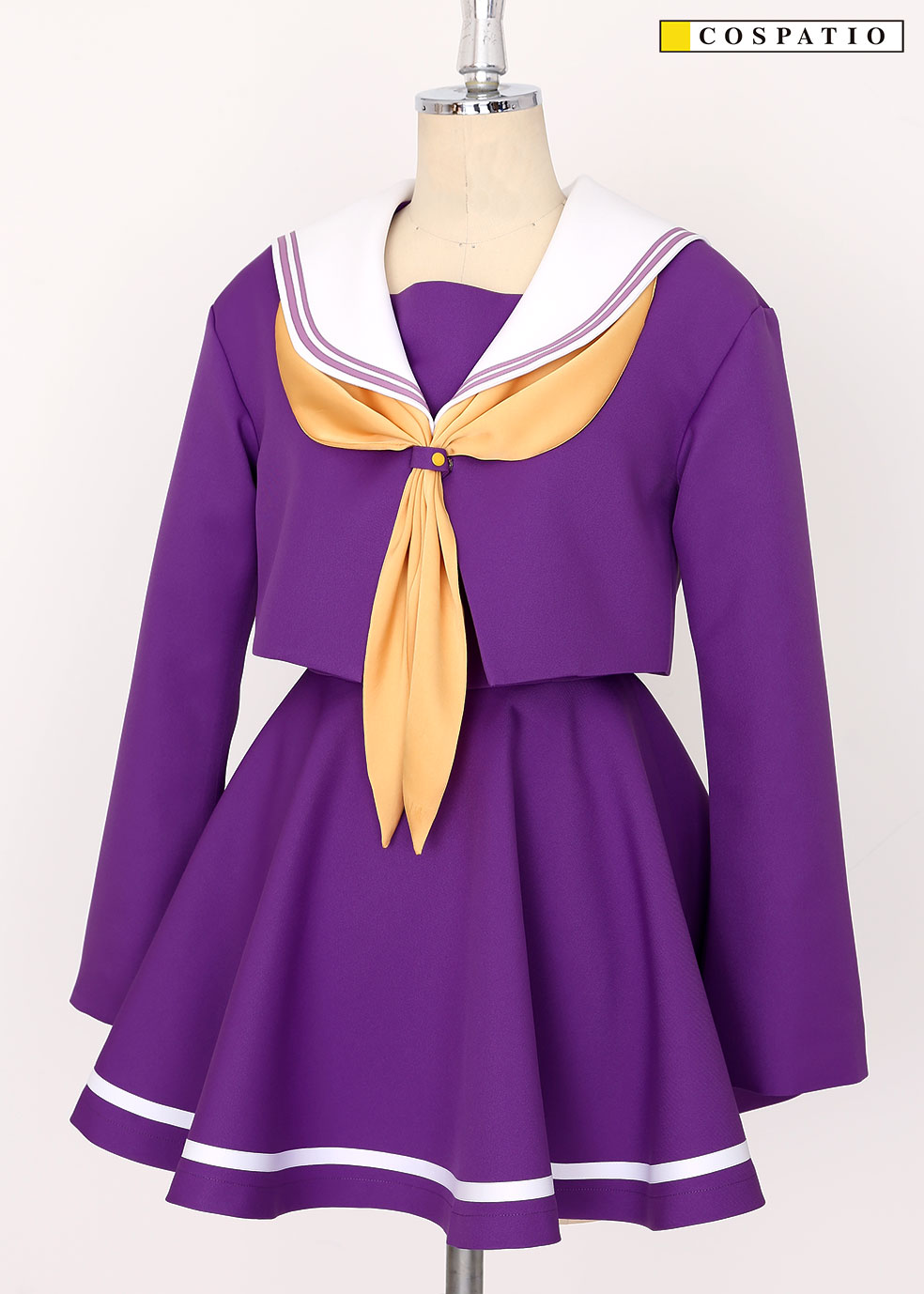 印象的な紫色と黄色いスカーフのアクセントが可愛いセーラー服は、オフィシャル監修の元こだわって選び抜いた生地を使用。作品の世界観を表現した鮮やかな発色と着心地の良さを兼ね備え、天才美少女「白」にふさわしい上質なセーラー服に仕立てました。
