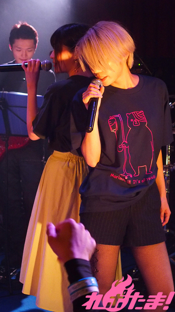 さらに、彼女が大好きなJUDY AND MARYの「そばかす」をクラップが鳴り響くなかで披露すると、オリジナルソング「KIro」を切なく、ピンク色の光に包まれ、語り掛けるように「すき。」、「Up and Downな僕たちは」と披露していった。