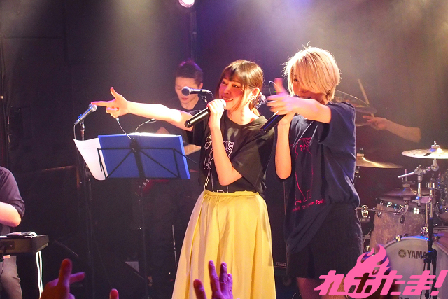 バンドメンバー紹介のあとはサプライズ! 新曲「break through」を披露し、客席も初見だとは思えないほどの盛り上がりをみせた。