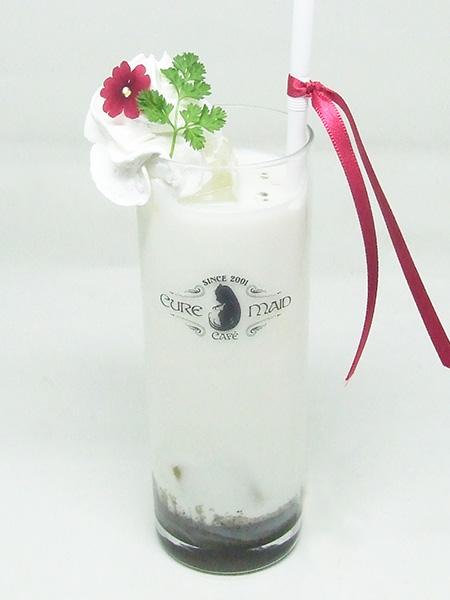 黒ゴマ練乳ソース×ミルク×ホイップ+バーベナ(赤)+チャービル+白ストロー+赤リボン