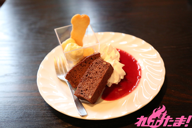血をイメージした酸味の強いフランボワーズソースは濃厚なブラウニーと相性が良く、ボリュームも満点!