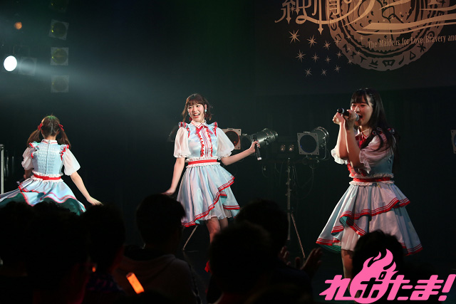 久しぶりの東京公演ということでメンバー紹介も入念に行ない、「女神さまのポイントカード」をキュートなダンスとともに披露すると、ここからはメドレーコーナー。といっても「ニーハイ・エゴイスト」や「ワタシ☆LOVEな☆オトメ」など、ライブの定番ナンバーを1曲1曲をノンストップかつしっかりと歌唱し、とってもボリューミーなブロックとなった。