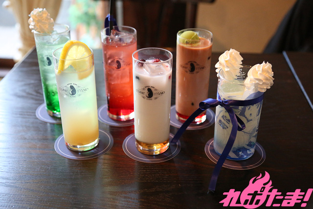 コラボメニューがずらり。先行販売の「ヘスティア グラス 」とコラボドリンクがセットになったコラボカフェならではのメニューもご用意しました!