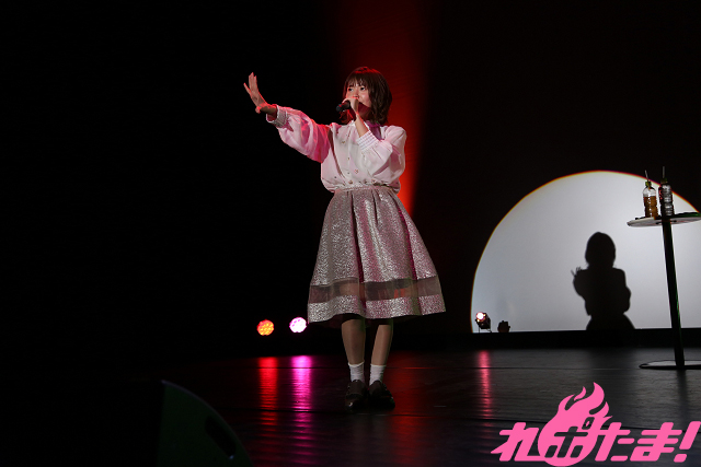 最後はライブコーナー。この日初披露となった『グリムノーツ The Animation』OPテーマ「Innocent Notes」、「Rice COMEnication」、そしてあやな公国の「国歌」である「apple*colorful*princess」と、色の違う3曲を歌唱した。