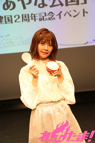 「あやな姫は、見破れるか!白米、目利きチャレンジ」は「安い米(ブレンド米)」「普通の米」「高級米」の3種類をすべて当てられれば高級米がプレゼントされる、という企画。実は普段お米の味について頓着があまりない(竹達さんいわく「どれもおいしいから」)そうで、惜しくもクリアならず。罰ゲームで「お米」に関連した恥ずかしいセリフを披露することとなった。