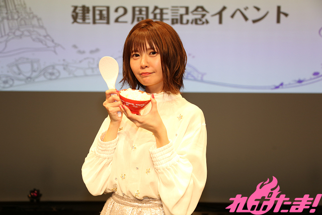 当日はお笑い芸人「アンバランス」の黒川忠文さんが司会のもと、まずはフリートーク。新元号「令和」が発表されたことにちなみ、「公国の新元号は何がいい?」と聞かれたところ「リブロース!」と答えた彼女。さすがはお肉好きで知られる竹達さんといったところ。しかし「多分明日には忘れていると思いますけど」と、いまいちしっくりきていない(?)ご様子……(笑)。
