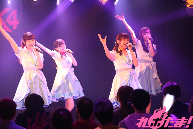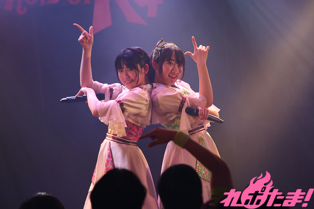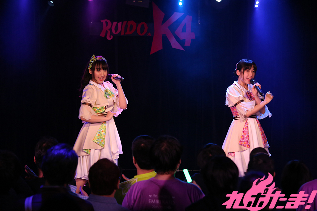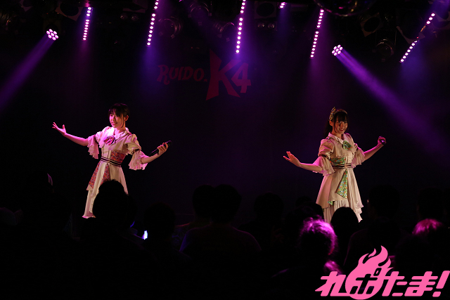 記念すべき最初のパートナーは、アニメ大好き女子のユニット・A応Pから生まれた工藤ひなきさん・堤雪菜さんによるユニット・K7K。彼女たちにふたりにとってはデビューステージとなるこの日はA応Pの楽曲を中心に披露していった。まずはTVアニメ『京都寺町三条のホームズ』OPテーマ「恋に咲く謎、はらはらと」を艶やかな振り付けとともに、そして「Stay Gold」と歌い上げた。