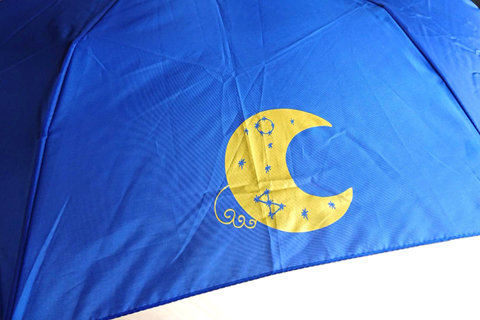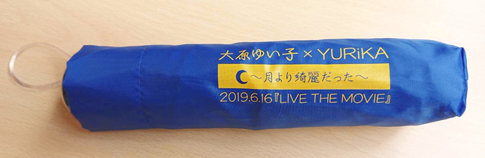 一方、大原ゆい子のグッズは季節柄重宝される「オリジナル折り畳み傘」。傘の一部にライブテーマの「月」のロゴが印刷されたこの折り畳み傘。何かと雨にゆかり?!のある大原ゆい子らしいグッズとなっています。是非お買い求めください!