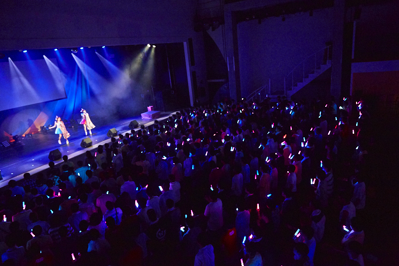 そして、「Welcome! My best friend」(1st)や「恋でした」(2nd)といったデビューアルバムの楽曲から、今回のテーマソングとも言える4thシングルカップリング曲「Pyxisランド」を初披露。キュートに響かせる歌声に加えて、ランドに遊びに来た2人のやり取りやランドのキャストを模した動き、記念撮影するポーズなども見どころで、2人が手を繋いで振り向く姿は印象的だった。