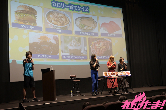 この日司会進行を務める石川界人の呼び込みで女性陣が登場すると、客席からは「キレてるよ!」「ナイスバルク!」「仕上がってる!」とボディビル大会さながらの掛け声が飛び出した。「皆さんナイスバルク!よろしくお願いしマッスル」の挨拶でイベントがスタートすると、上映を前に見所についてファイルーズは「街雄さん」、雨宮は「新鮮な筋肉」、石上は「ED後の、『とある』シーン」とそれぞれ語った。また石川は自身が歌唱参加している「OPED」を挙げ、喉を壊すほど面白い出来になっていると自信をのぞかせていた。