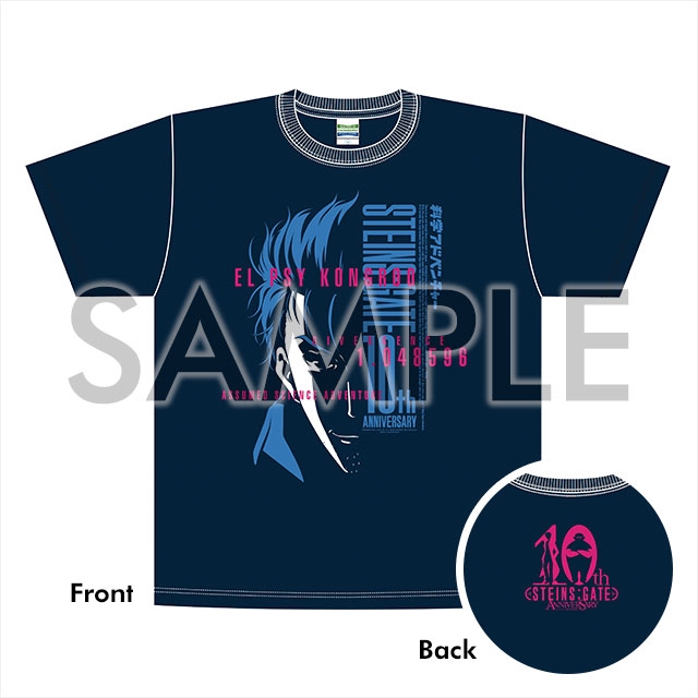 「STEINS;GATE10周年」を記念して制作された、無駄にかっこいいTシャツです。前面にオカリン、背中面にオカリンとダルのシルエットがあしらわれたSTEINS;GATE10周年の公式ロゴがデザインされています。