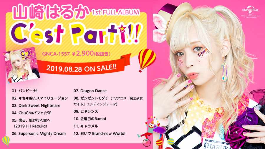 今回のアルバム「Cʼest Parti !!」は「遊園地(テーマパーク)」をテーマに楽曲を制作。山崎はるかとしての歌い方を確立するのではなく、「声優だからこそ演じることができる様々なキャラクターを楽曲ごとに表現したい」という想いのもと、デモ制作から山崎はるか自身も参加した意欲作となっている。作詞陣には唐沢美帆、KOTOKO、こだまさおり、山本メーコ、作曲陣にはエンドウ.、齋藤真也、佐高陵平といった豪華クリエイターが参加しており、どのような楽曲に仕上がっているのか期待したい。このアルバムに収録される楽曲は、今後も文化放送・超!A&G+「山崎はるかのC’est Parti !!」で毎週明らかになっていくとのことなので是非番組を欠かさずチェックしてほしい。