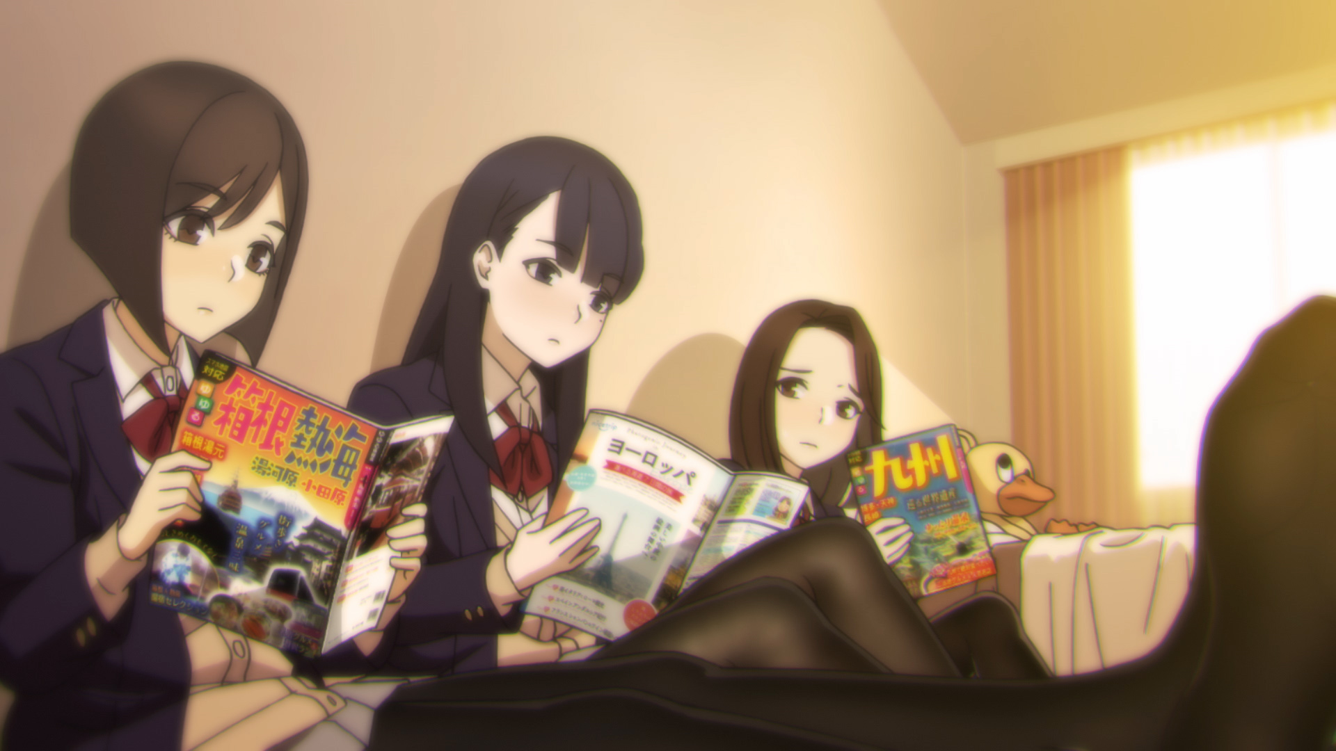 春休みに旅行に行きたいレン、ユア、ホミは、ユアの部屋で行き先の相談をする。海外、国内、海、温泉と行きたいところは多く、話はまとまらない。寝転がって相談を始める3人だったが、いつの間にか眠ってしまう…