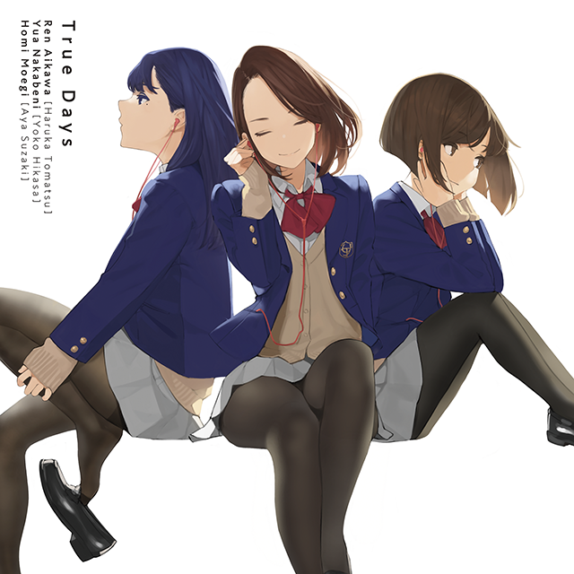 また、7 月 27 日(土)22 時より配信開始、第 12 話のエンディングに使用される、メインキャラク ターである藍川レン (CV.戸松遥)、中紅ユア (CV.日笠陽子)、萌黄ホミ (CV.洲崎綾)の3人が 歌う主題歌「True Days」の情報が解禁されました。第1話~第 11 話までは、3人それぞれが 歌う3バージョンが週替わりでエンディング曲として使用されましたが、第 12 話では3人が歌っ ています。作曲・編曲は『みるタイツ』の音楽を担当する Shade(ゲーム「アズールレーン」など) が担当します。3バージョンとは違うアレンジにもぜひご注目ください。3人で歌う「True Days」 は、7 月 27 日(土)22 時より配信スタートを予定しています。